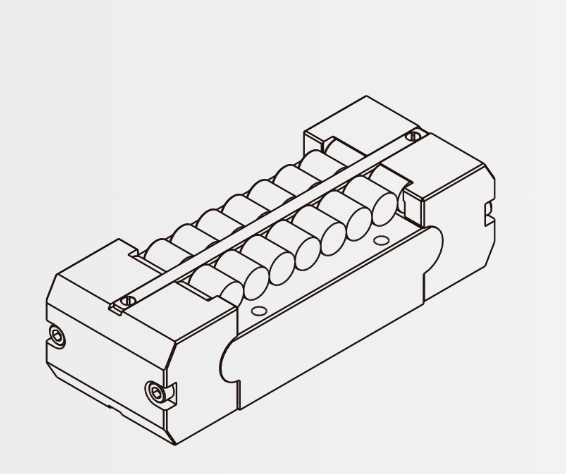 【合理的防侧倒结构】 使用滚柱的直线运动系统,如果滚柱产生了侧倒,摩擦阻力就会增大,行走精度就会降低。 LM滚柱滚动块为防止滚柱侧倒,在保持器中央部全周及轨道台负荷区域中央设置了滚柱导向部,即使由 于安装精度误差等发生了滚柱侧倒,也能自动纠正,使滚柱进行正确的排列运动。此外,还能以倾斜面安 装或侧面安装直接使用,发挥其高性能。