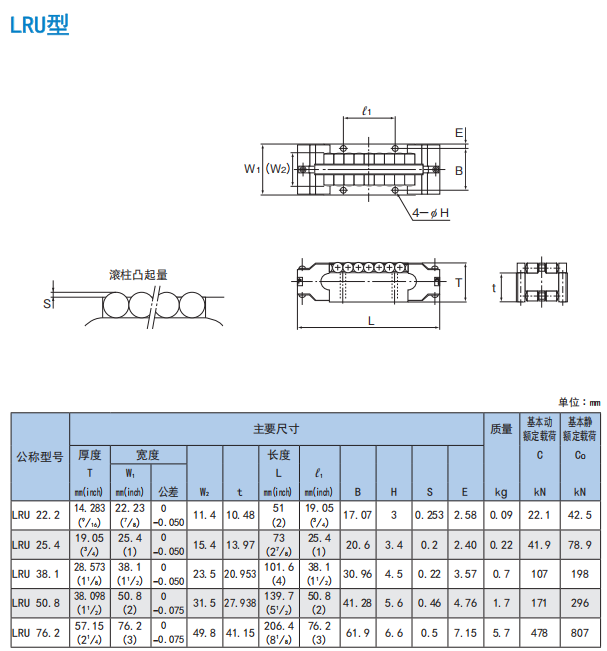 THK英制滚柱滚动块LRU22.2 LRU25.4 LRU38.1 LRU50.8 LRU76.2