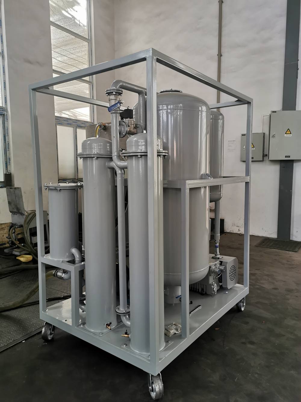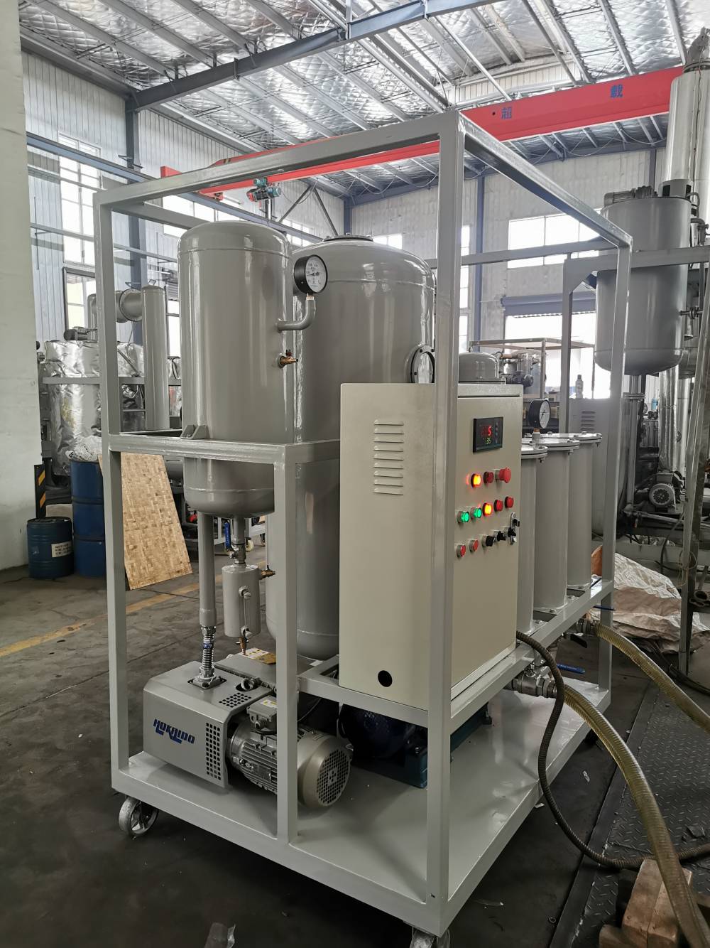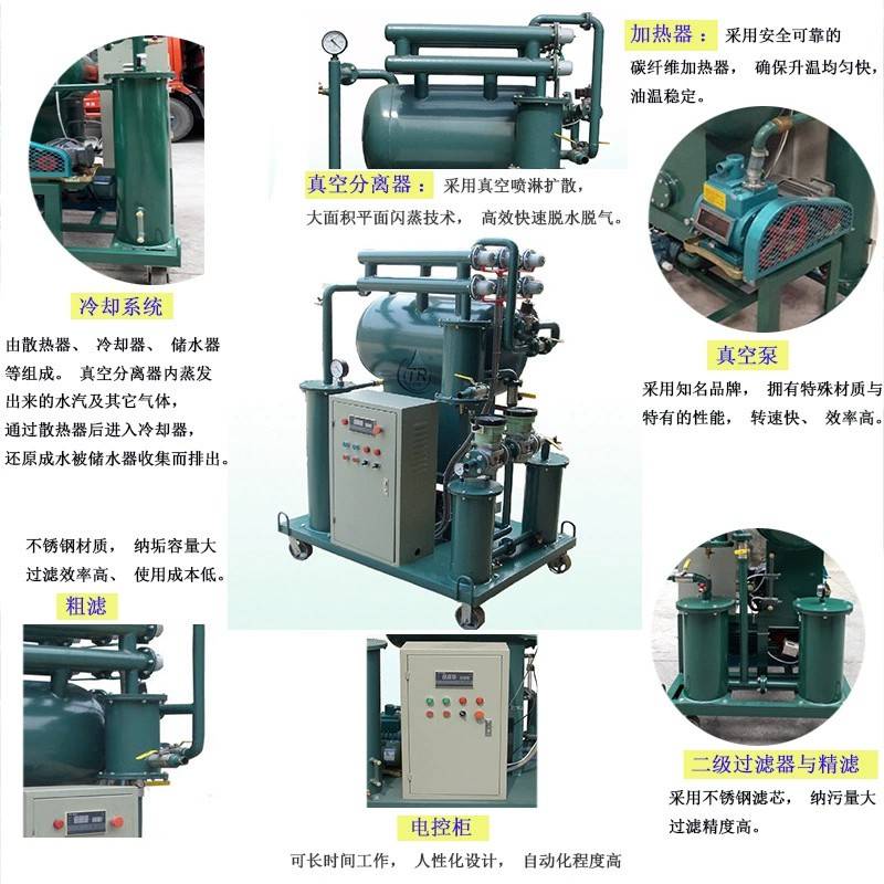 严格执行标准以《DL/T521—93真空净油机使用导则》和《机械行业标准真空滤油机JB/T 5285-2008》为指导,为适应维修部门现场检测维护各类高低压带油设备的需要,我们设计具有体积小、比例重量轻、移动方便、噪音低、连续工作时间长、性能稳定、操作方便等特点。是各电厂、电站、变电所、电器制造厂、炼油厂、石油化工等工矿企业过滤变压器油、绝缘油等油液中的水分、气体和杂质微粒的理想设备。
